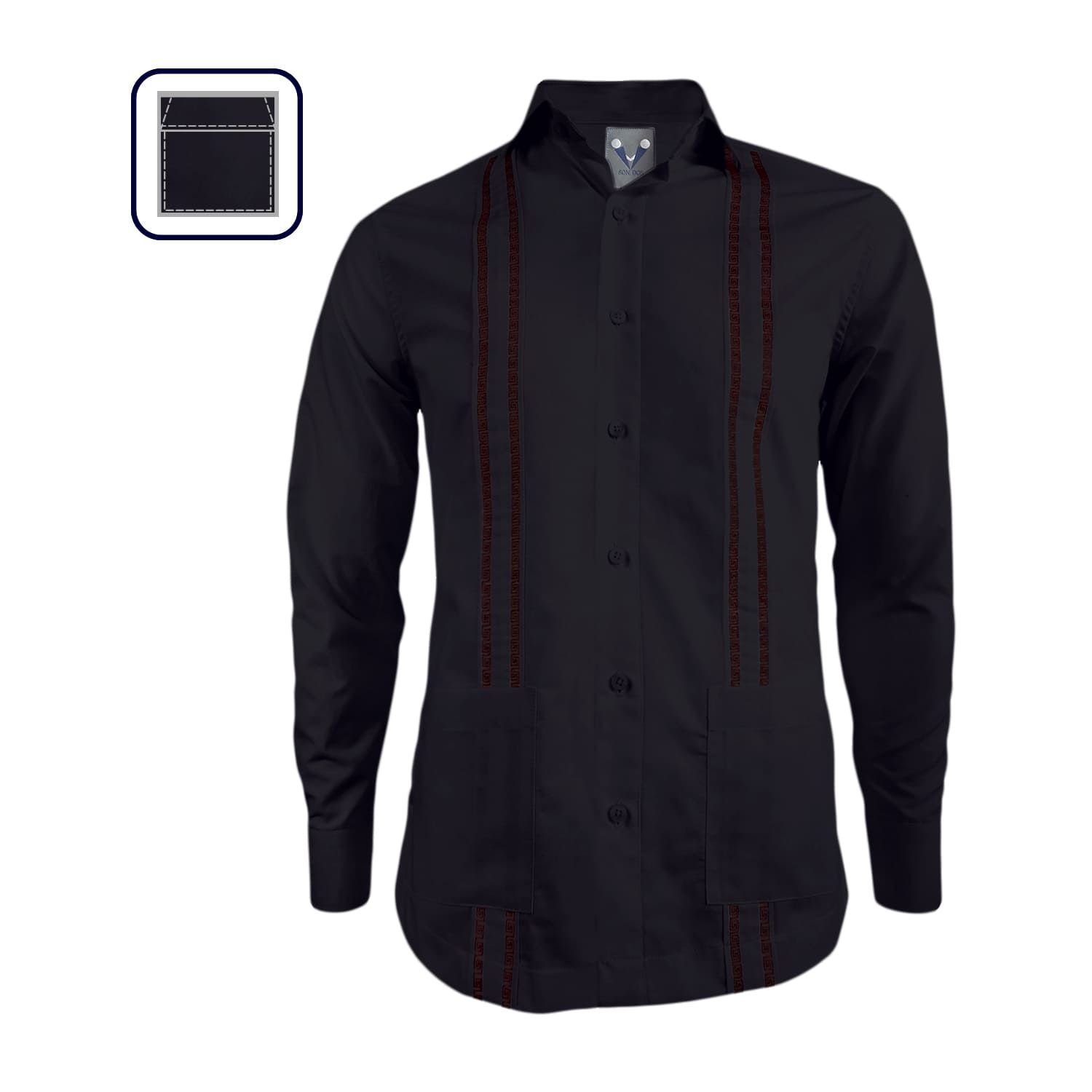 Guayabera negra manga larga hotsell, Camisa guayabera en negro bordada con bolsillos manga larga hombre SON DOS falabella hotsell